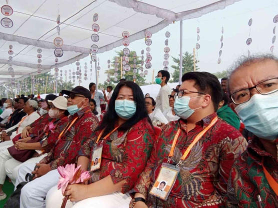 Bahagianya lagi, saya bersama istri, anak, kedua mertua, dan umat Buddha Banten anggota Magabudhi, Wandani, serta Upasaka Upasika, dengan seragam Batik Merah dan Celana Putih mendominasi delegasi Indonesia dan dikagumi oleh peserta yang lain.